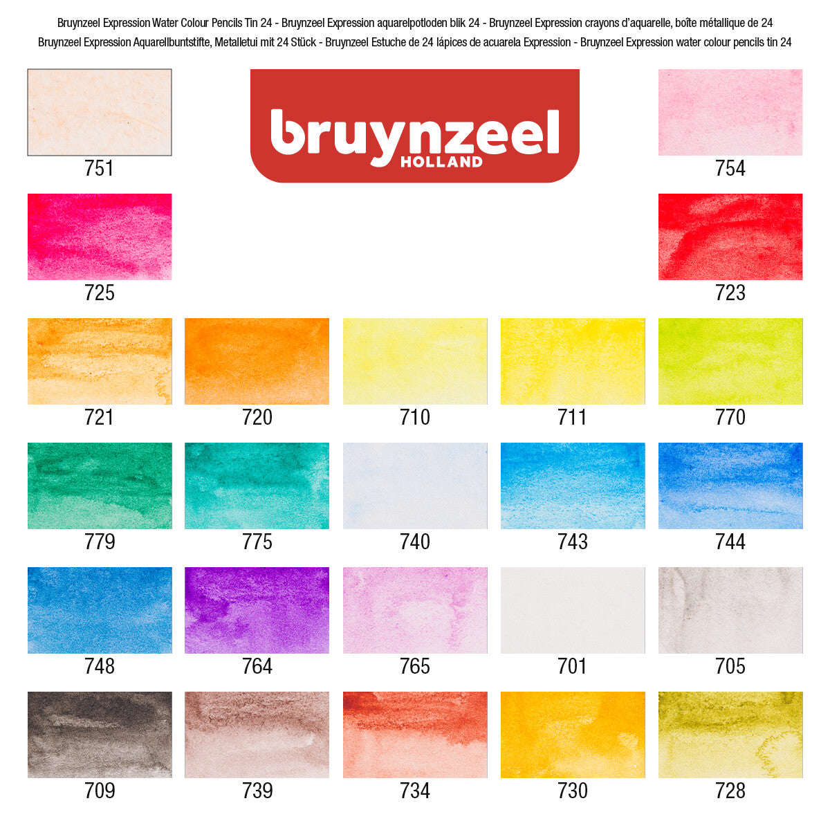 - Bruynzeel Expression set contains 24 high-quality watercolor pencils with a strong, thick 2.9 mm core.