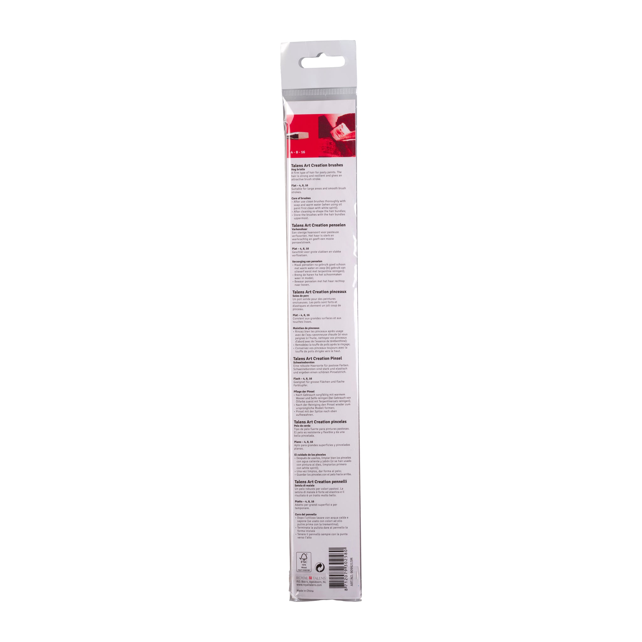 - The set contains the following types and sizes: 3 flat brushes in sizes 4, 8 and 16.