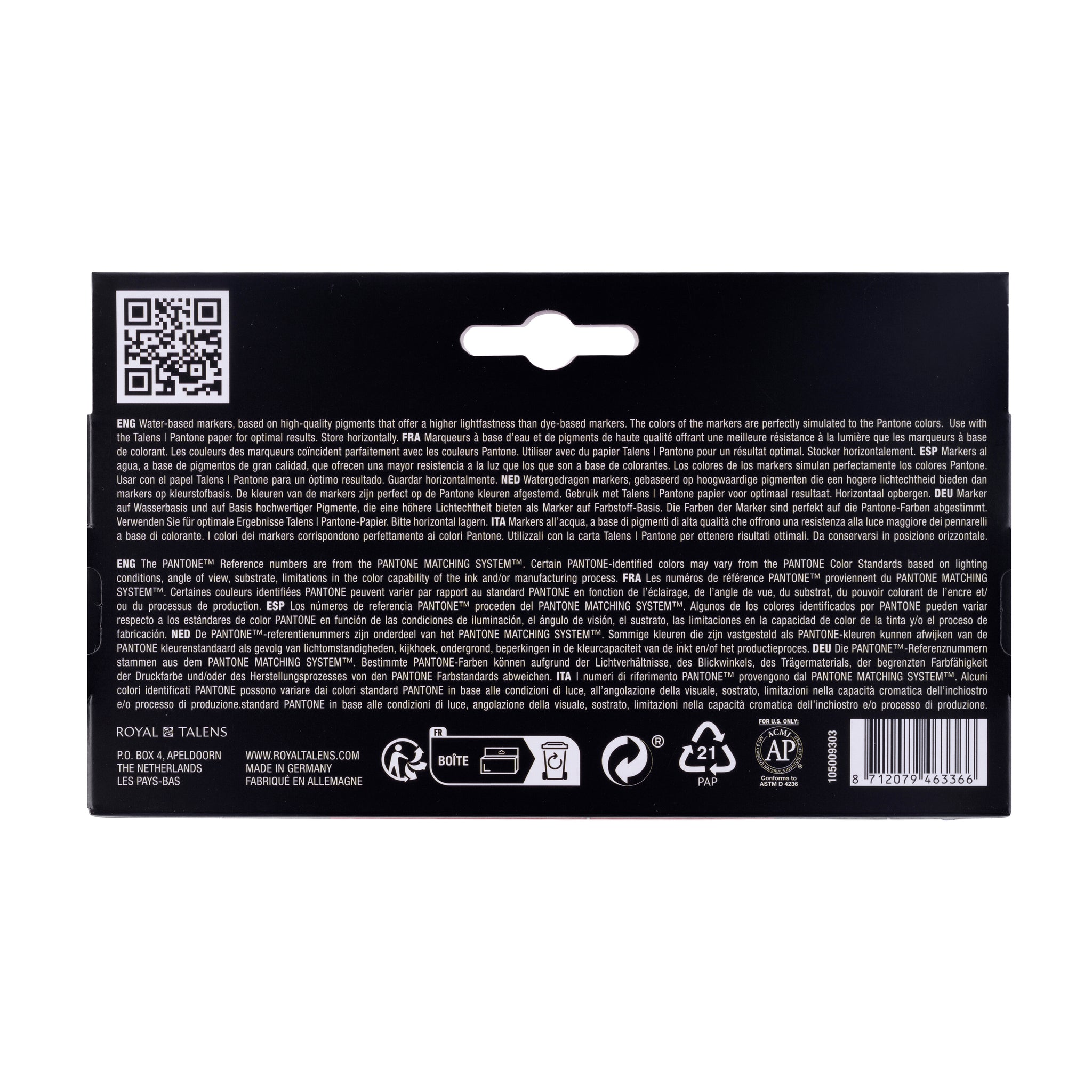 These high-quality markers contain pigmented, water-based ink in vivid colors based on the Pantone Matching System™. Meticulously formulated, adjusted and tested by Talens, co-designed and approved by Pantone.