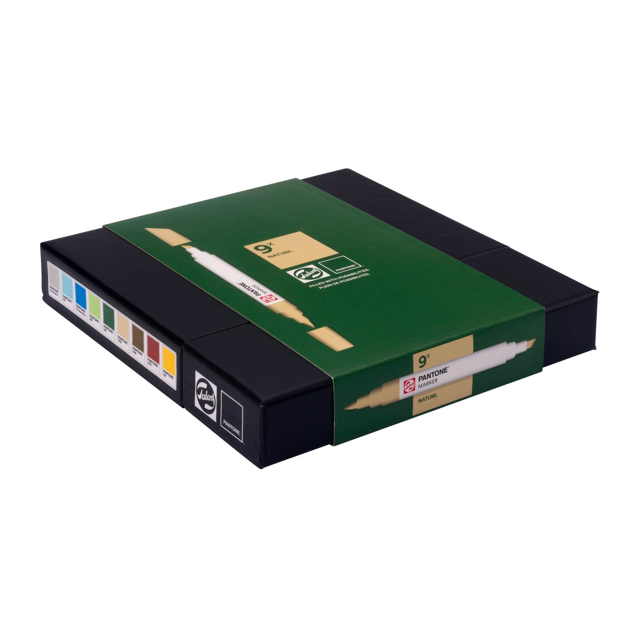 This set contains 9 Talens | Pantone markers and comes in a sturdy box with a sleek, horizontal design, ensuring your markers are always ready to use with optimal ink flow to both nibs. Thanks to the color names and numbers on the caps, you can easily pick the right color for your work.