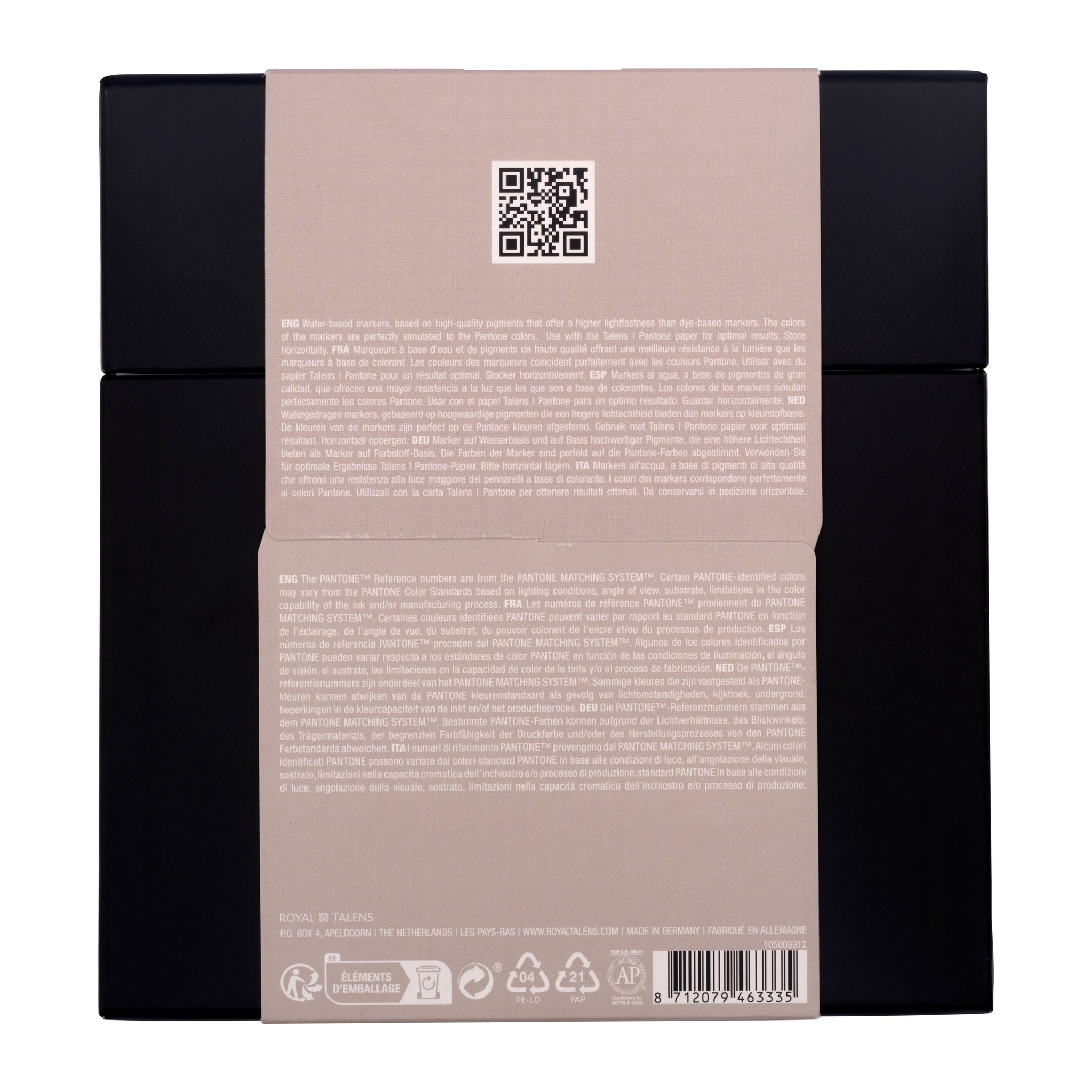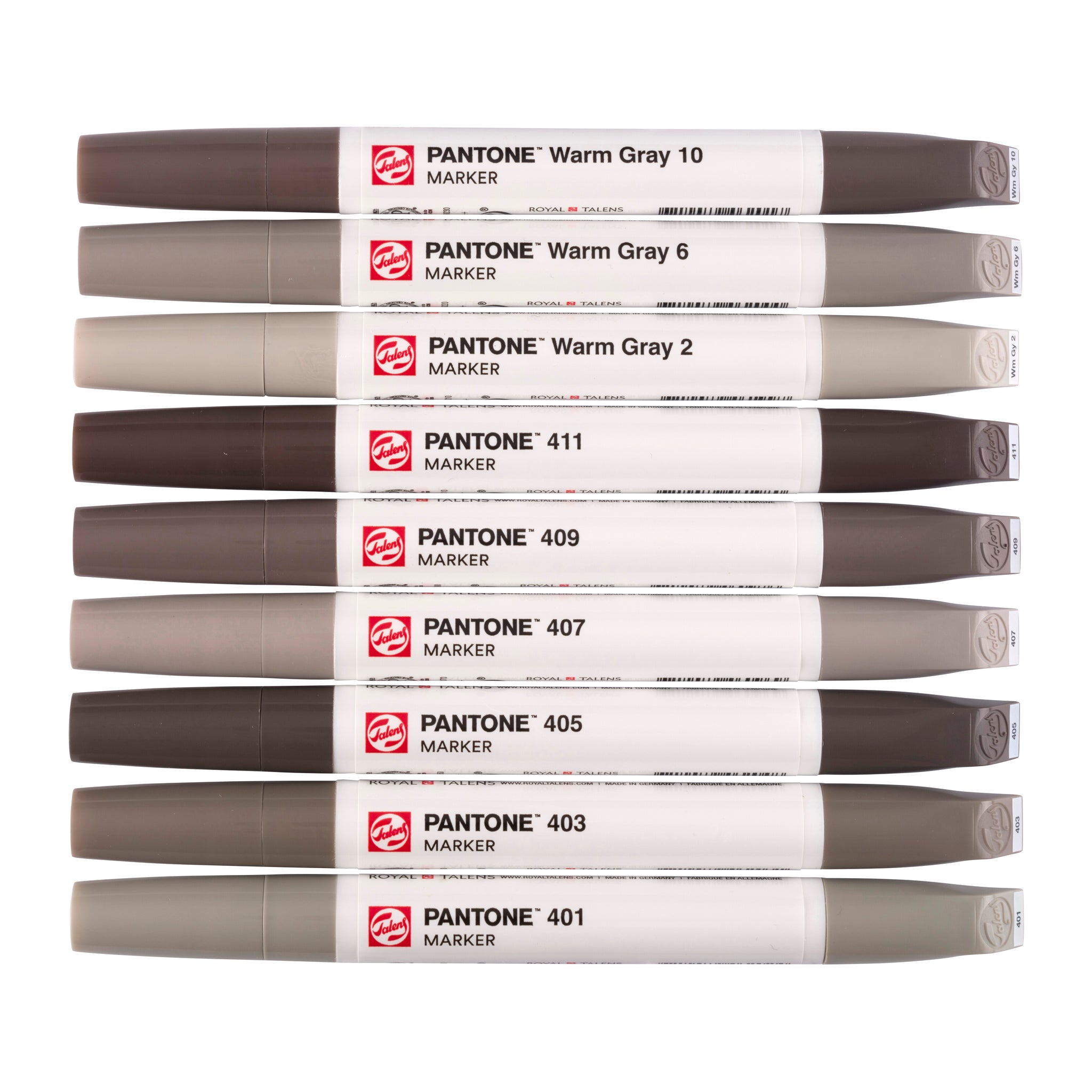 Contents: 9 Talens | Pantone markers (401 – 403 – 405 – 407 – 409 – 411 – Warm Gray 2 – Warm Gray 6 – Warm Gray 10).