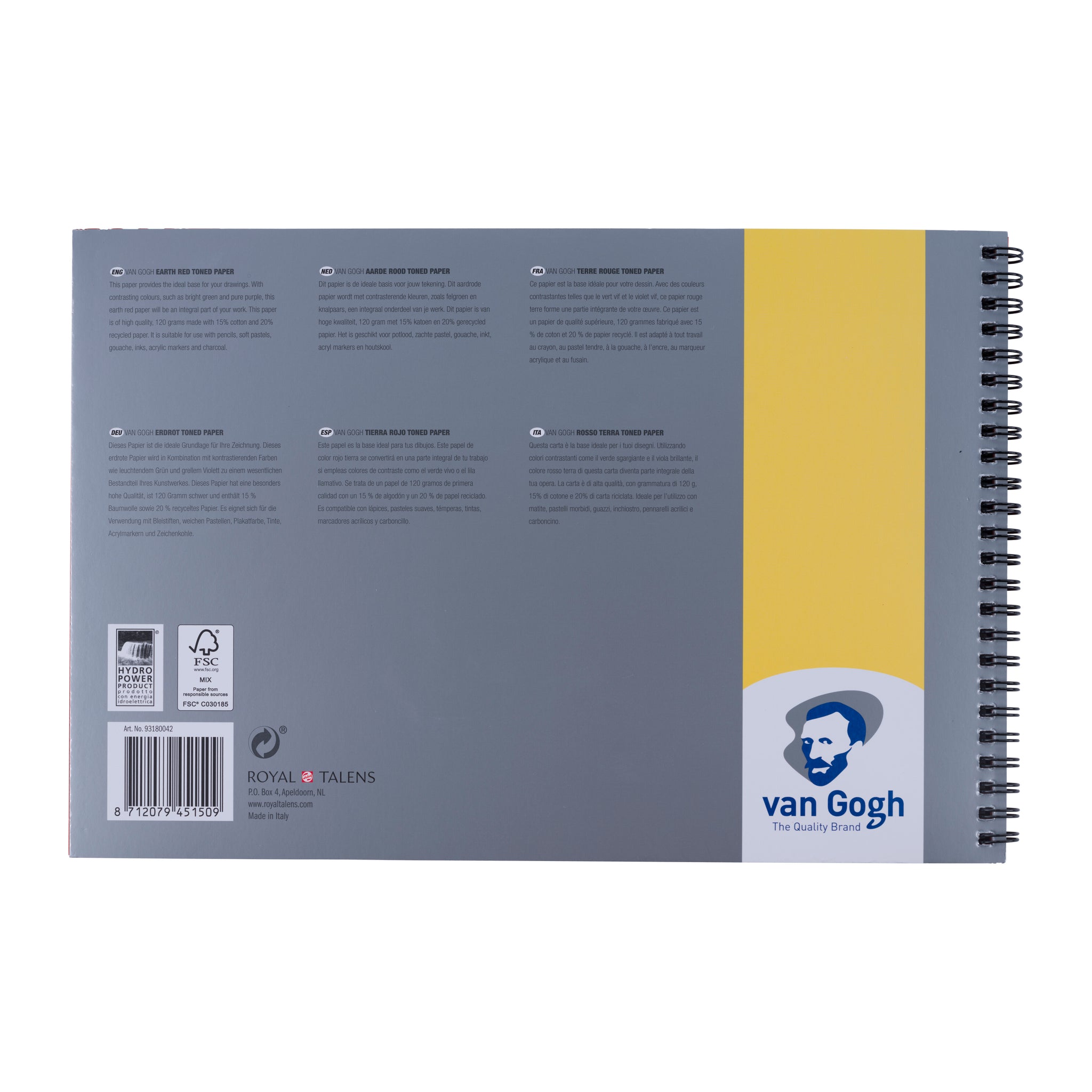 This paper provides the ideal base for your drawings. With contrasting colours, such as bright green and pure purple, this earth red paper will be an integral part of your work. This paper is of high quality, 120 grams made with 15% cotton and 20% recycled paper. It is suitable for use with pencils, soft pastels, gouache, inks, acrylic markers and charcoal.
